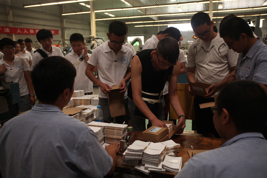 为了充分了解和掌握产品的生产工艺和包装流程,巩固和理解理论课程内容,提高其实践能力、动手能力、观察问题、分析问题、解决问题的能力,同时,使员工能提前深入企业了解各类包装企业需要的专业技术人才和包装工程专业在企业中所扮演的角色,并为后续的毕业(设计)论文以及就业打下一定的基础,公司2012级包装工程专业1班31名同学于2015年7月12,在指导老师范贵生、王新亮、李广平和成培芳的带领下赴天津各食品及包装印刷各企业单位,开始了为期一周的生产实习活动。此次共走访参观了天津海河乳业有限公司、中法合营王朝葡萄酿酒有限公司、天津宝德包装有限公司、天津广大纸业有限公司、天津王朝包装印刷制品有限公司、天津市利民调料有限公司、天津海顺印业集团、天津华恒包装材料有限公司、天津顶正印刷包材有限、天津赛闻工业有限公司等10家食品以及包装相关企业。