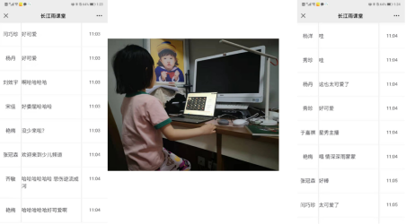 图5 课间教师孩子表演及部分员工弹幕互动