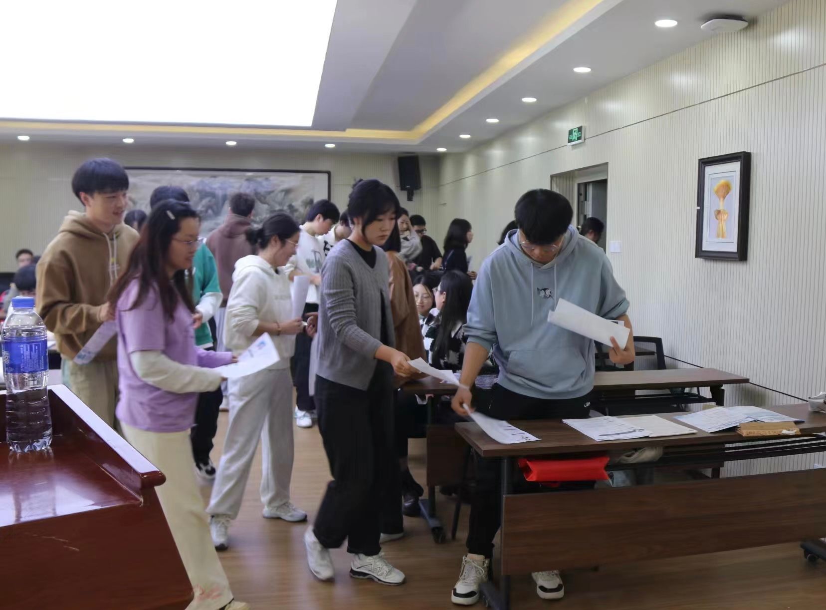 宣讲结束后,根据岗位需求,张祥和公司招聘专员王宝朝对应聘者进行了专业知识和综合素质的考察。