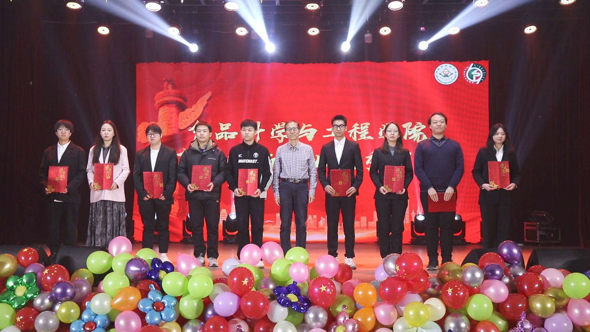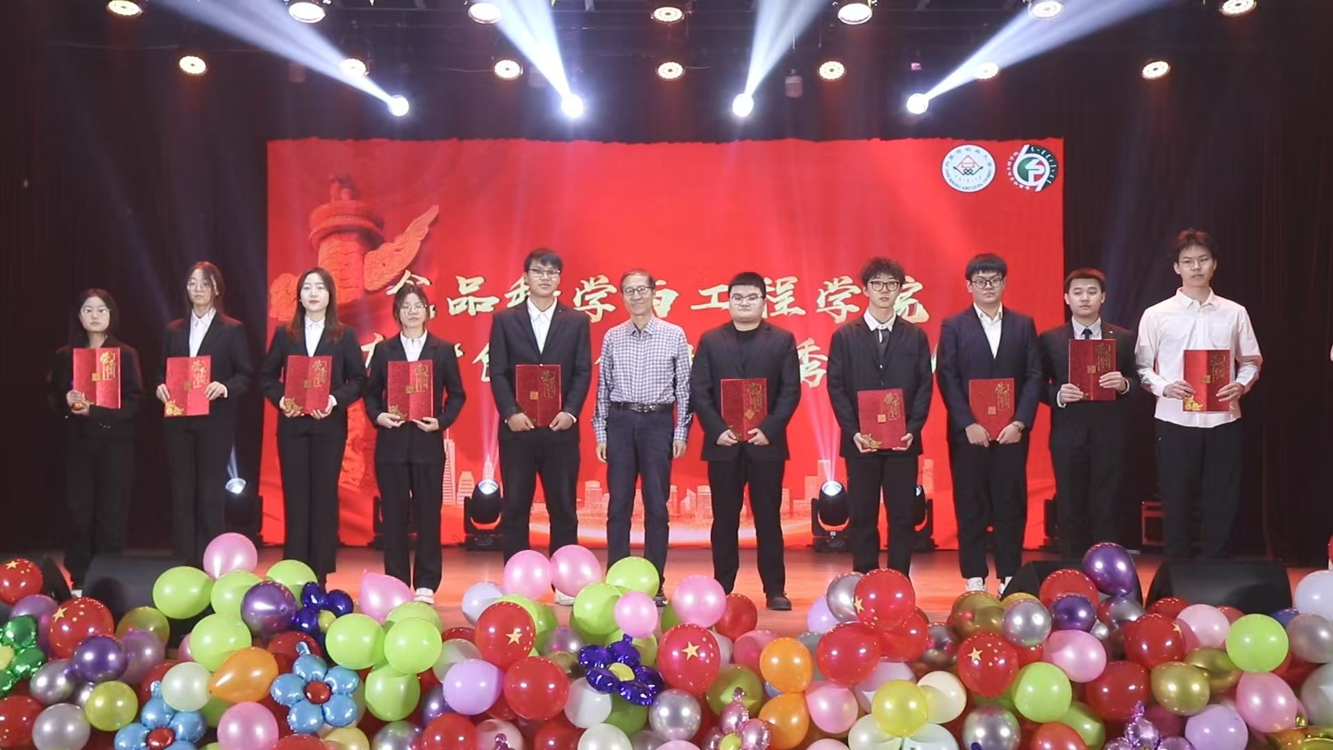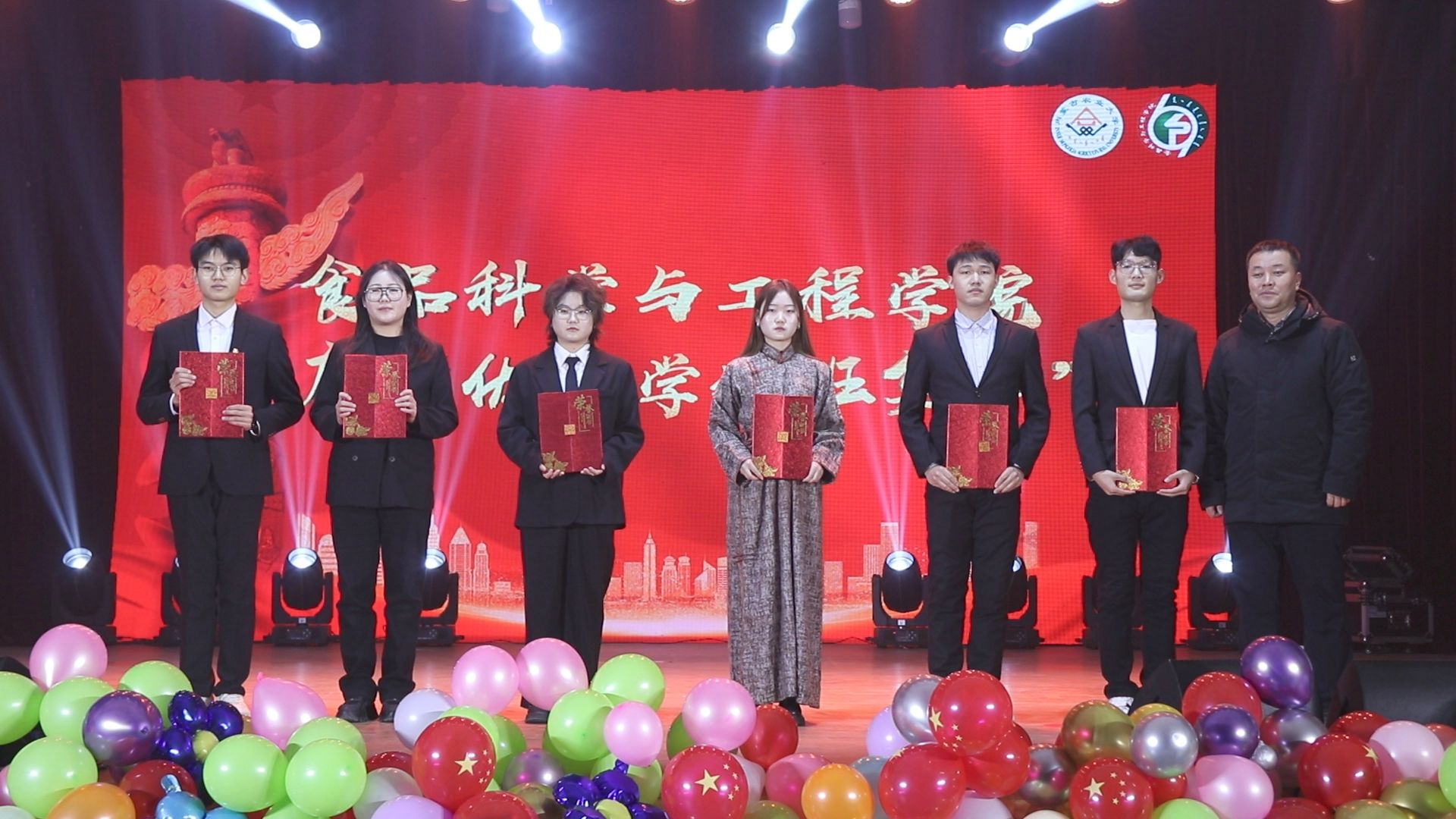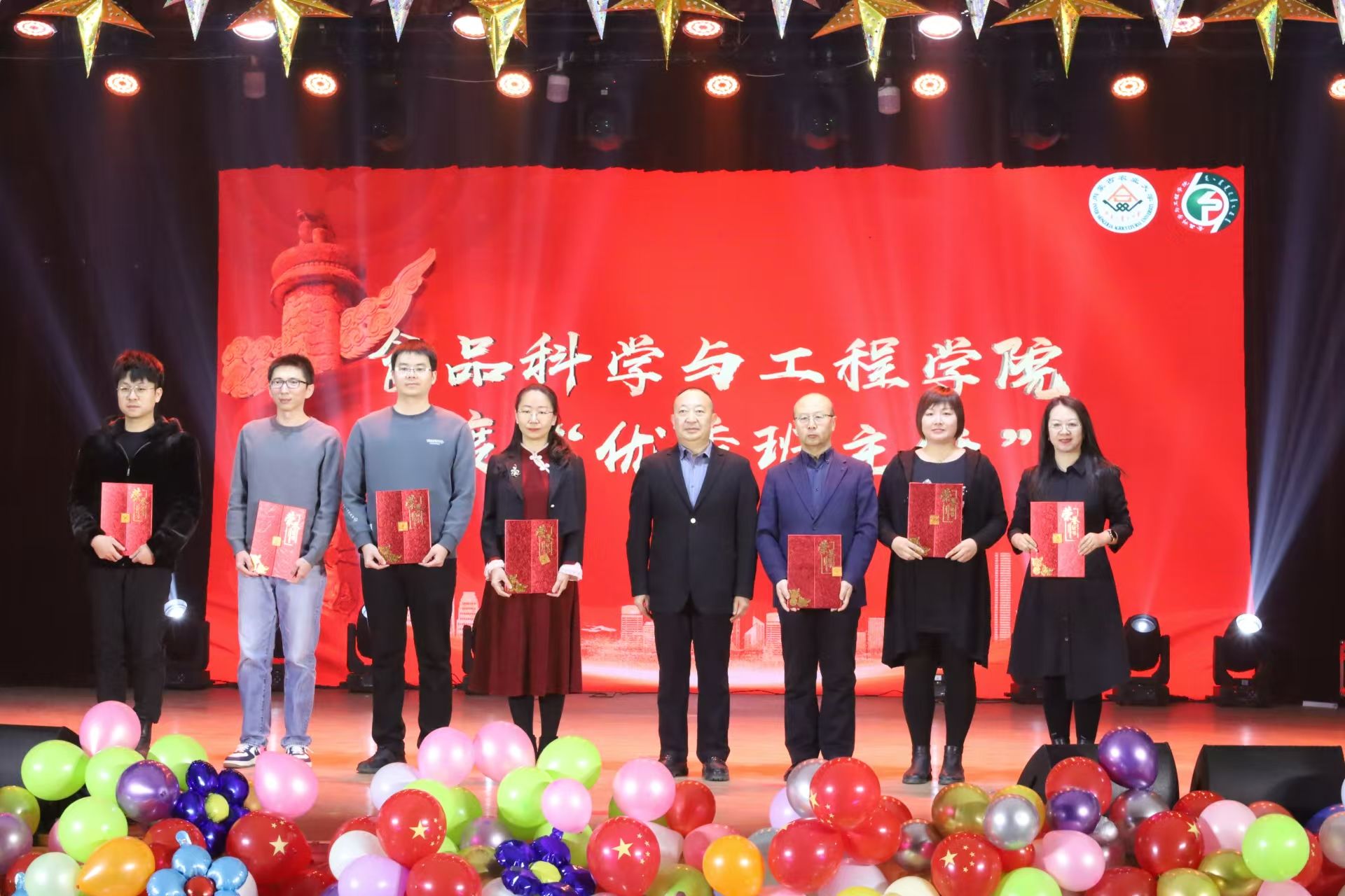 到场的领导和嘉宾分别为获得年度“五四红旗团支部”“优良学风班集体”“创新创业优秀团队”“优秀班主任”“学习标兵”、社会实践活动“优秀团队”“体育拼搏个人”“文明宿舍”“伊利”奖学金的38个优秀集体与57位优秀个人颁奖并合影留念。