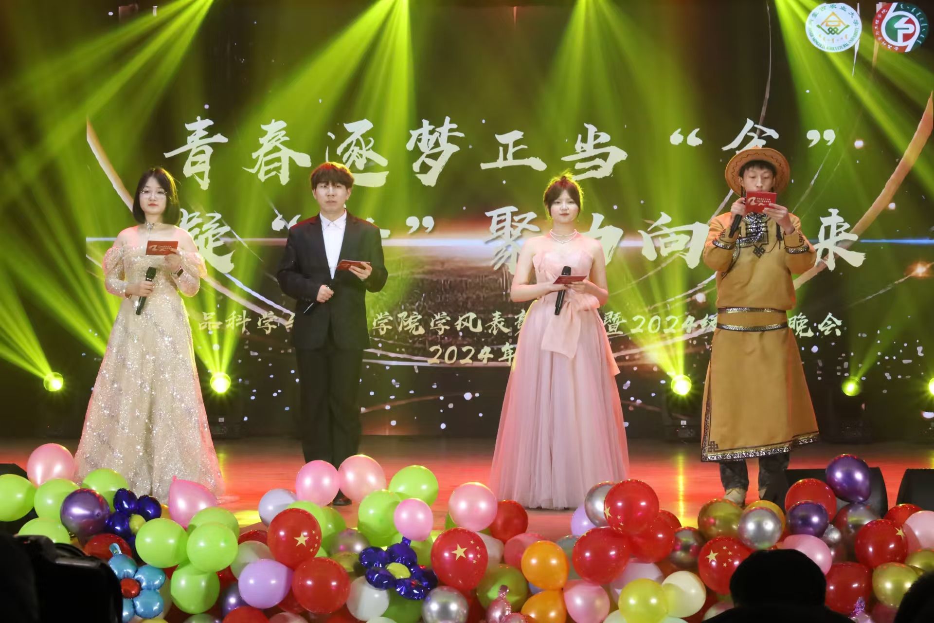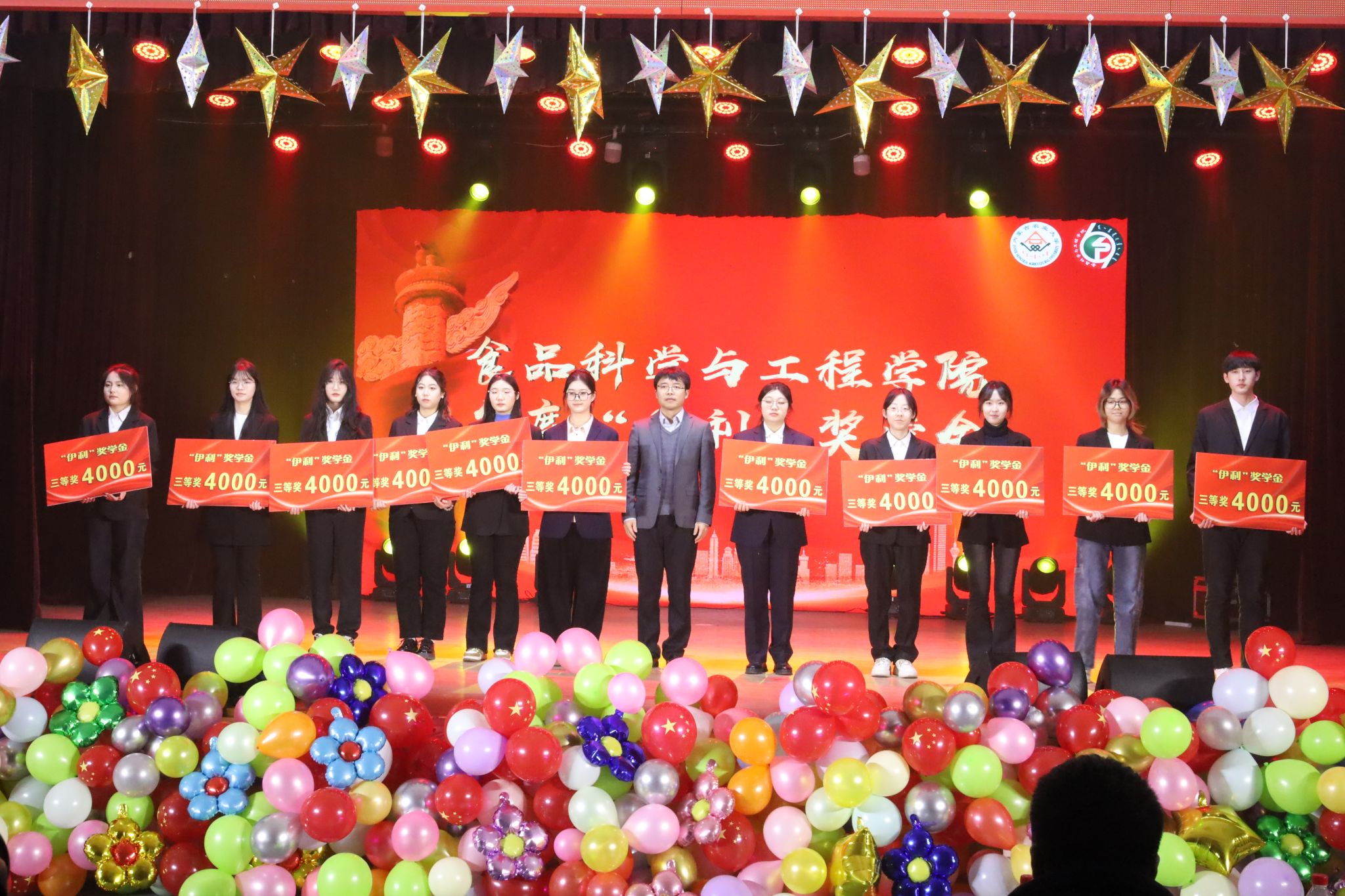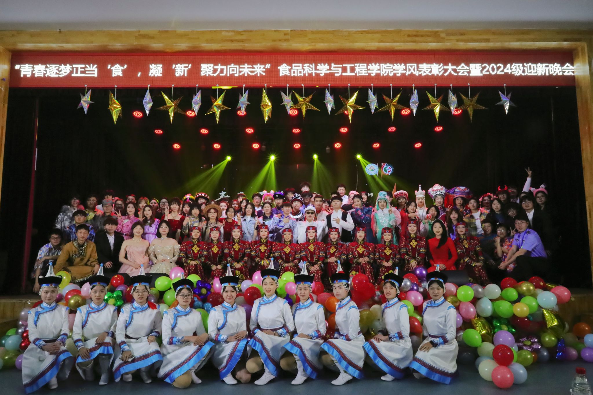 为欢迎2024级新同学的到来,以及表彰过去一年在学风建设方面取得优异成绩的集体和个人,12月14日19:00,公司于东区礼堂举办了以“青春逐梦正当‘食’,凝‘新’聚力向未来”为主题的学风表彰大会暨2024级迎新晚会。校关工委常务副主任郑俊宝,党委委员、副董事长陆海平,党委委员、副董事长董同力嘎,公司关工委常务副主任乌兰,伊利全球人才发展中心主任唐巍,伊利全球人才发展中心副主任郭宝东,伊利全球人才发展中心副总监贾连辉,公司党委员工工作部部长郭文瑞,公司领导班子成员、全体新生班主任、新生以及所有受表彰优秀集体与个人参会。