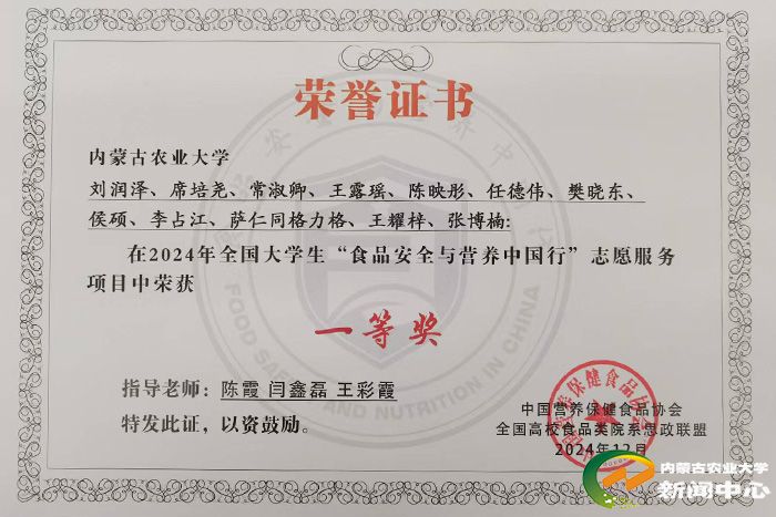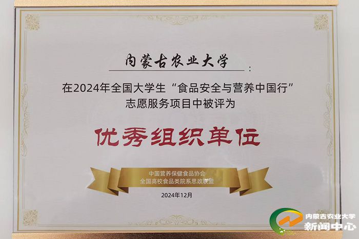 集团青益北疆志愿服务队获得2024年全国老员工 “食品安全与营养中国行” 志愿服务项目一等奖