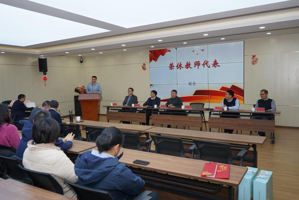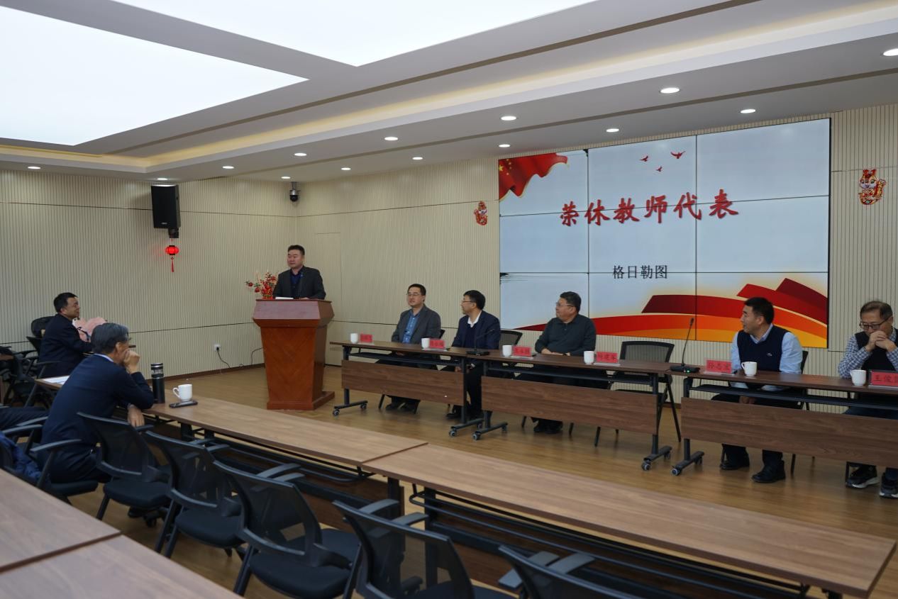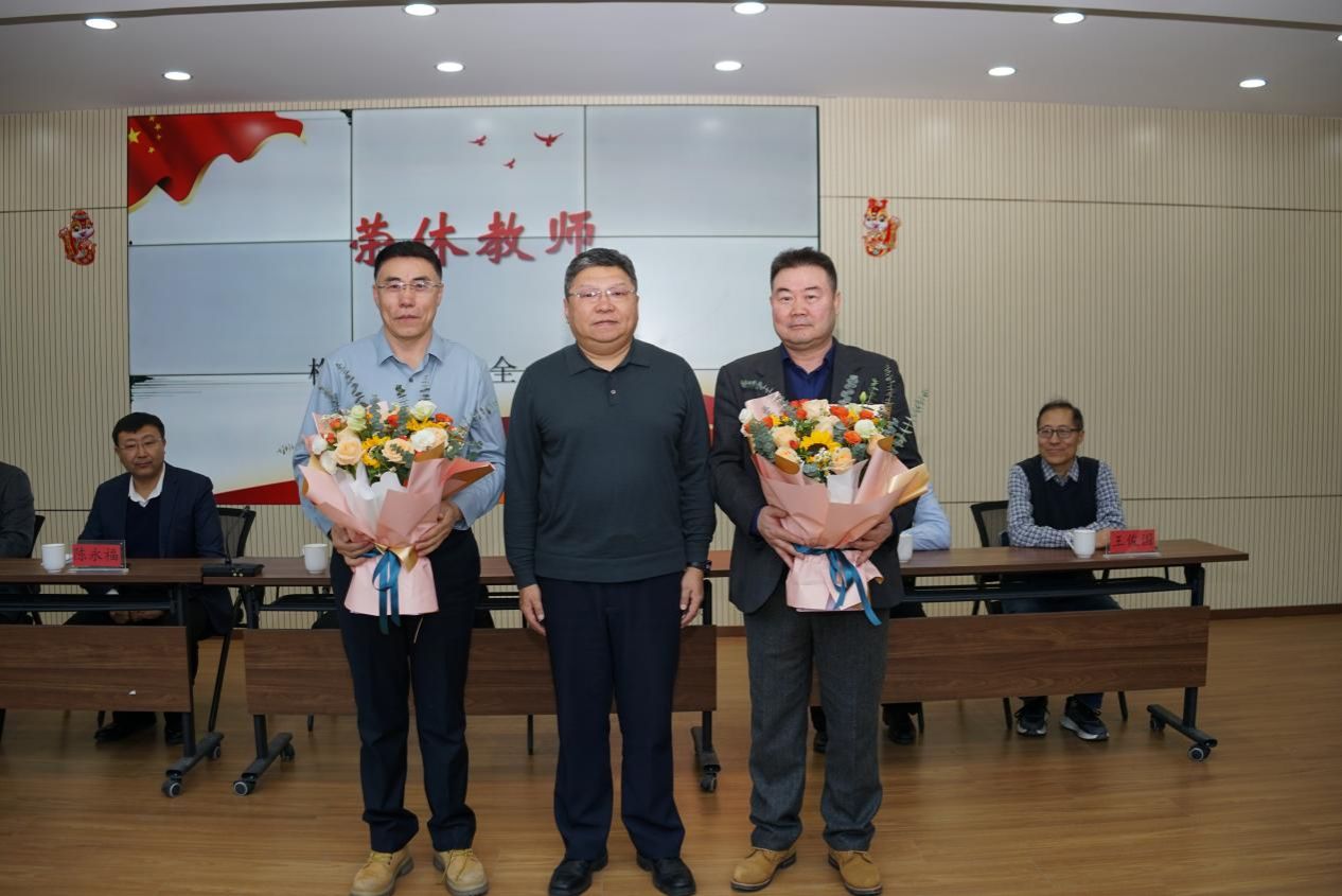 大会为双全、格日勒图和邢黎明老师举行了隆重的荣休仪式,并送上了诚挚的祝福与感谢。双老师和格老师在发言中深情回忆了在公司工作的点滴,勉励年轻教师继续传承公司优良传统,用青春与热忱开创更辉煌的未来。陈永胜书记为两位教授献上鲜花和纪念品,现场掌声经久不息。