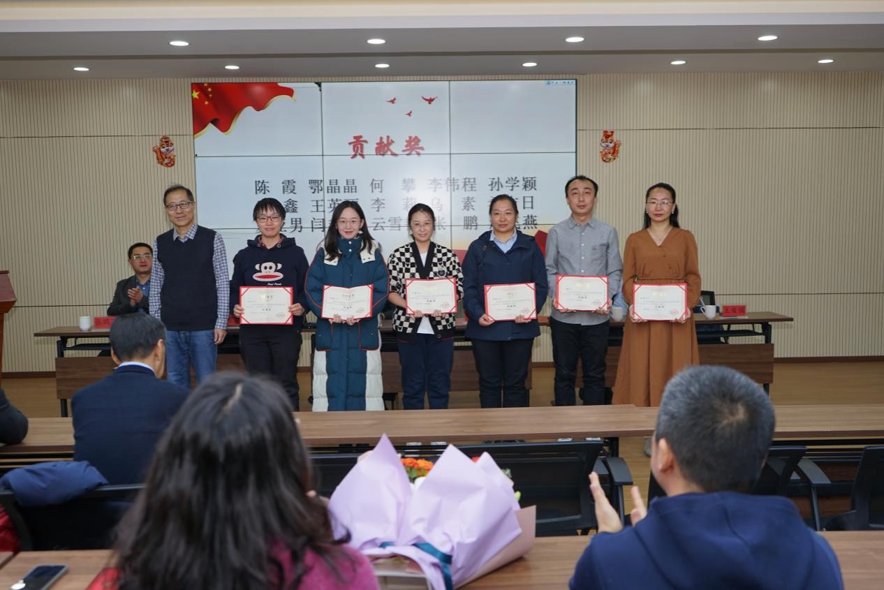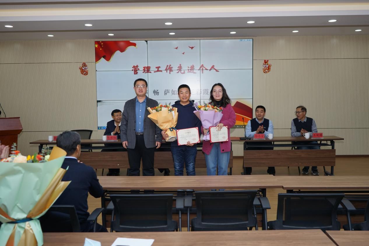 大会的最后环节是颁发年度工作先进奖和审核评估贡献奖。张和平、张文羿、云雪艳获科研工作先进个人,段艳、王英丽、张鹏获得教学工作先进个人;李畅、萨如拉、王彩霞获得管理工作先进个人,由孙志宏经理、张鹏飞书记和王俊国经理分别为先进个人颁奖。由张和平老师代表先进个人发言。另外,公司产品审核评估离不开公司老师们的大力支持,会议为审核评估工作做出贡献的教师颁发特别贡献奖和贡献奖。