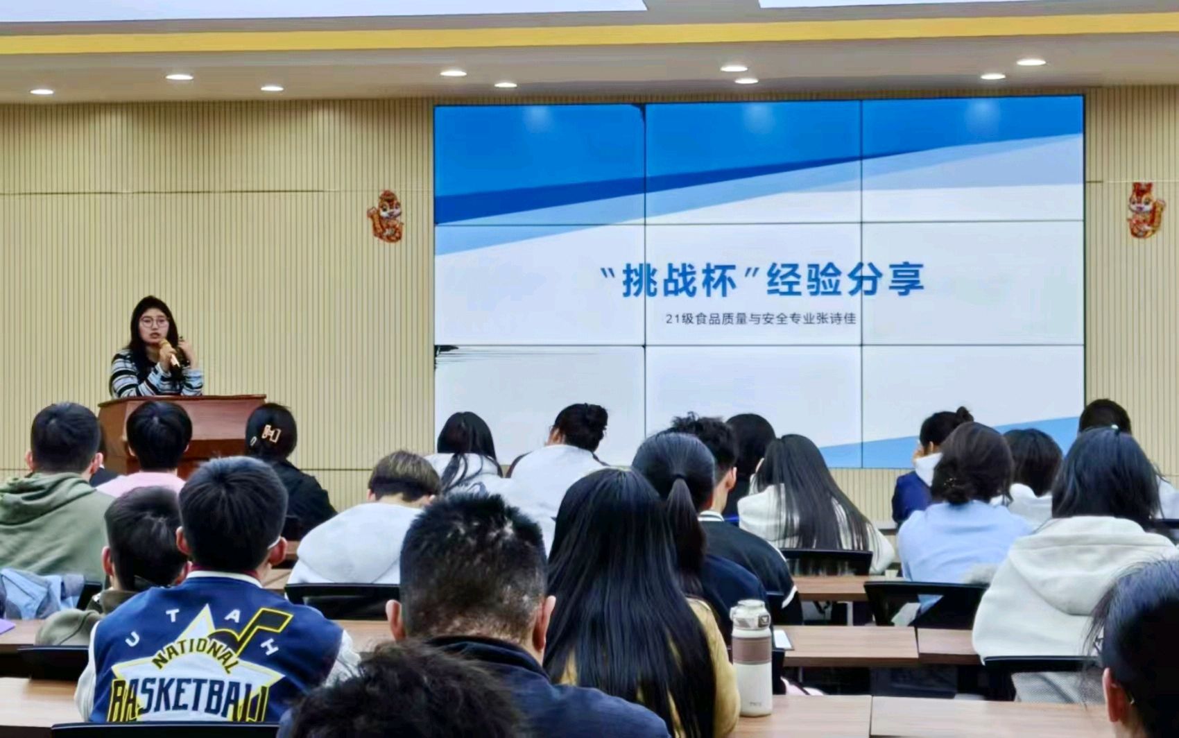 “挑战杯”自治区金奖获得者贾谣、铜奖获得者李蕊竹及校级奖获得者张诗佳就大赛的选题立意、备赛技巧以及项目展示等关键环节进行了深入分析。她们不仅分享了关于竞赛选题的独到见解、了解竞赛信息的有效途径,同时结合自身经历,为大家提供了开展科技创新的宝贵经验和深刻感悟。