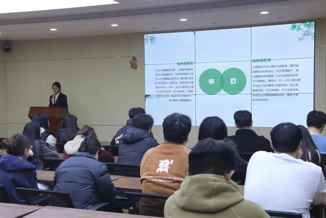 会上,侯碧青同学首先强调了心育委员责任重大,身兼宣传者、观察者、桥梁者多重身份。既要分享公司心理中心活动信息、普及心理健康知识,又要留意同学状态、关注特殊群体,还要在师生间做好沟通工作,反馈班级同学心理状态、帮助同学对接专业心理资源。随后,她讲解了常见心理问题的识别、心理危机的干预技巧等内容。为了让心育委员更直观的了解心理健康知识,培训还组织观看了贴近员工生活的视频案例,引发在场同学们的深入思考。