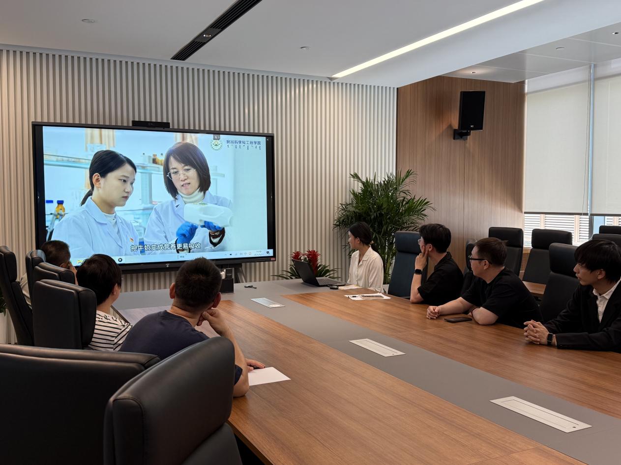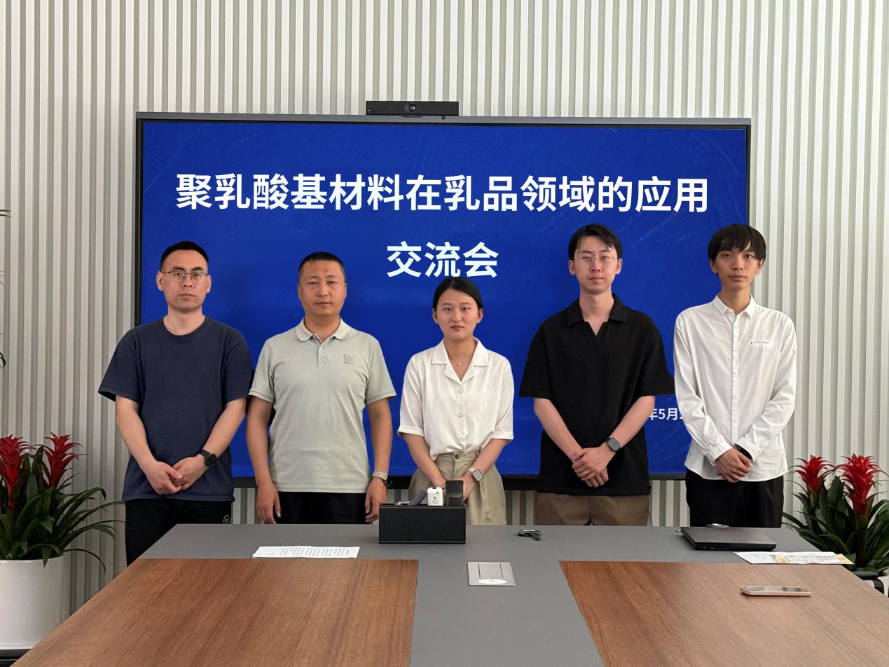 5月21日下午,食品院绿色食品包装工艺与材料内蒙古高等公司创新团队走进国家乳业技术创新中心(呼和浩特),就聚乳酸基材料在乳品领域的应用进行校协企研合作交流活动。伊利集团创新中心宋利君经理、内蒙古乳业技术研究院张雅君研究员、王兴研究员、绿色食品包装工艺与材料内蒙古高等公司创新团队的胡健老师、杜佳慧、孙滔博士生等一行参加活动。此次交流活动聚焦绿色包装技术研发与科普实践,旨在搭建 “校协企研” 深度合作桥梁,推动乳业科技创新与产业升级。