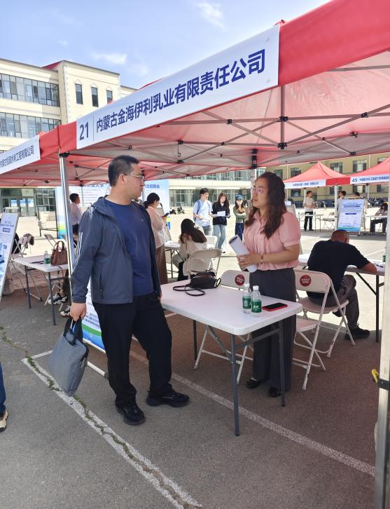 本次招聘会吸引了47家优质用人单位来校招聘,其中包括伊利集团各分公司、内蒙古正大食品有限公司、万正投资集团、内蒙古科拓生物有限公司、中粮家佳康(赤峰)有限公司等大中型企业,共为毕业生提供了1100余个就业岗位。2025届毕业生踊跃参加,在招聘会现场积极与用人单位沟通交流,面对面了解公司规模、岗位需求、企业文化、发展前景及薪酬待遇等信息。现场招聘人员耐心细致地解答员工疑问,并收取员工简历。