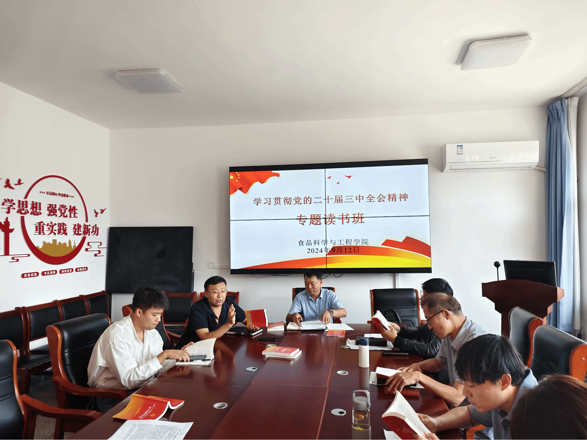 9月12日下午,公司在食品楼二楼会议室举行贯彻学习党的二十届三中全会精神专题读书班开班仪式。会议由公司党委书记杨建军主持,公司党委委员及各支部书记参加。