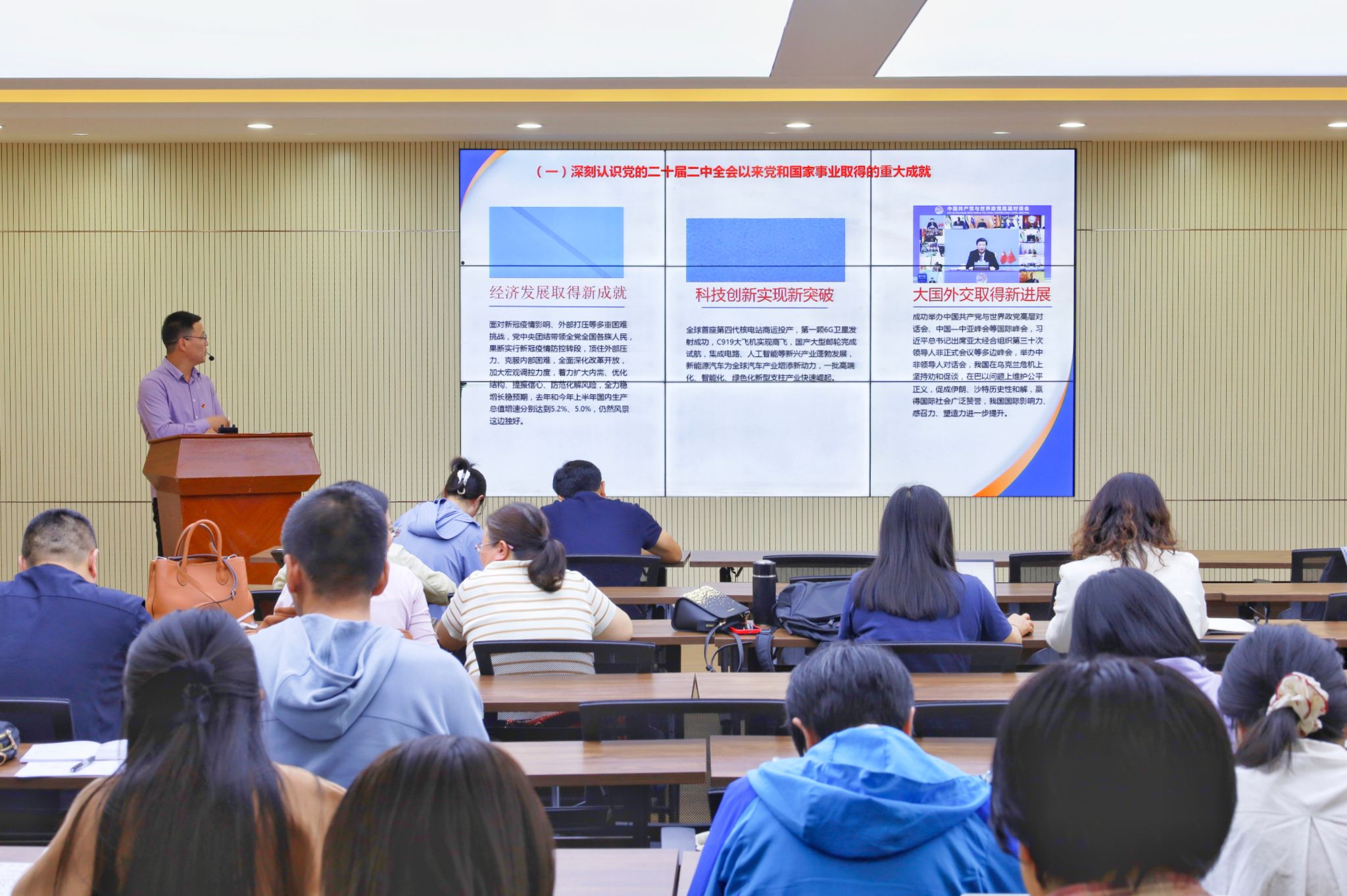 9月26日下午,公司特邀马克思主义公司白嘎利老师向全院教职工宣讲党的二十届三中全会精神。宣讲会由公司党委书记杨建军主持,全体教职工参加。
