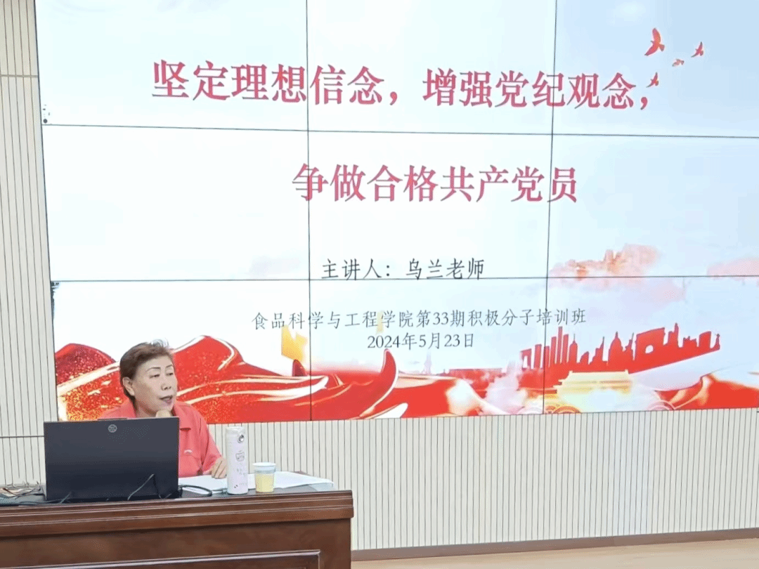 2024年5月23日19:00,公司分党校第三十三期入党积极分子第二次党课在乳品楼二楼顺利开展。本次党课由现任内蒙古老教授报告团副团长、农大关工委报告团成员、食品院关工委常务副主任乌兰老师主讲,第三十三期积极分子及员工党员服务站成员参加。