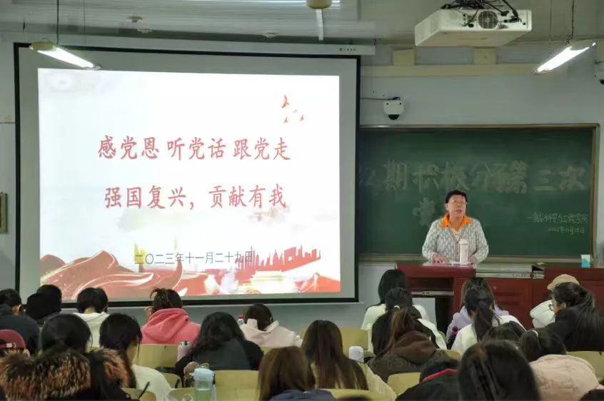 2023年11月29日19:00,公司分党校第三十二期入党积极分子第三次党课在博学楼307顺利开展。本次党课由现任内蒙古老教授报告团副团长、农大关工委报告团成员、食品院关工委常务副主任乌兰老师主讲,第三十二期积极分子及员工党员服务站成员参加。