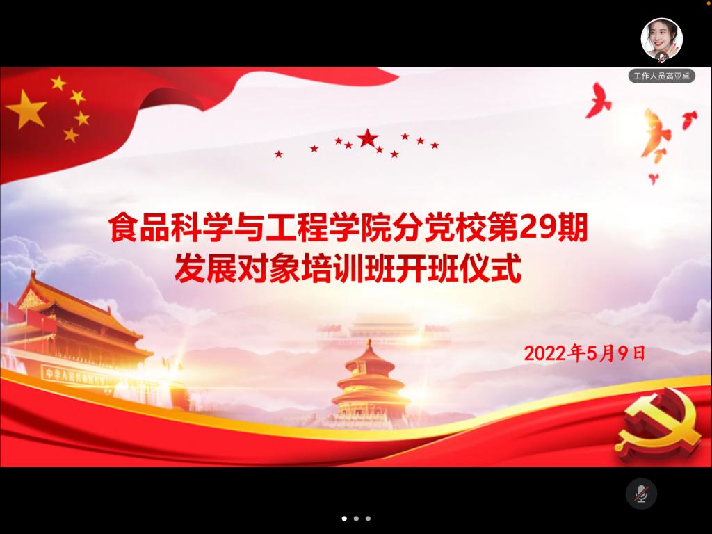 2022年5月9日晚七点,在食品院二楼会议室以线上线下相结合的方式举行公司分党校第29期发展对象培训班开班仪式暨第一次党课。公司党委书记杨建军,党委副书记张鹏飞,全体员工党支部书记、委员以及本期发展对象参加,党委副书记张鹏飞主持会议。