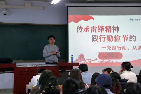为弘扬雷锋精神,树立崇高理想追求,践行社会主义核心价值观,3月16日晚7:00,公司于博学楼209举行“传承雷锋精神 践行勤俭节约”主题食品安全与营养讲座,公司食品质量与安全教研室副主任闫鑫磊应邀主讲,讲座由学办老师娜美丽嘎主持。
