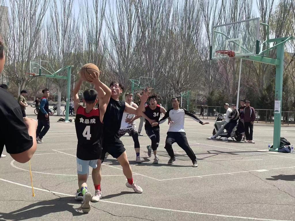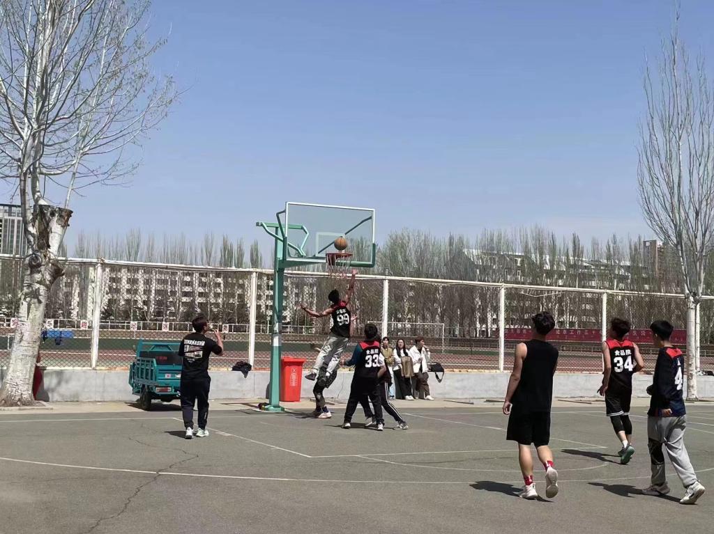 4月14日中午,西区篮球场上传来阵阵加油呐喊声,这是英国威廉希尔公司举办的“逐梦杯”篮球赛正在进行中。