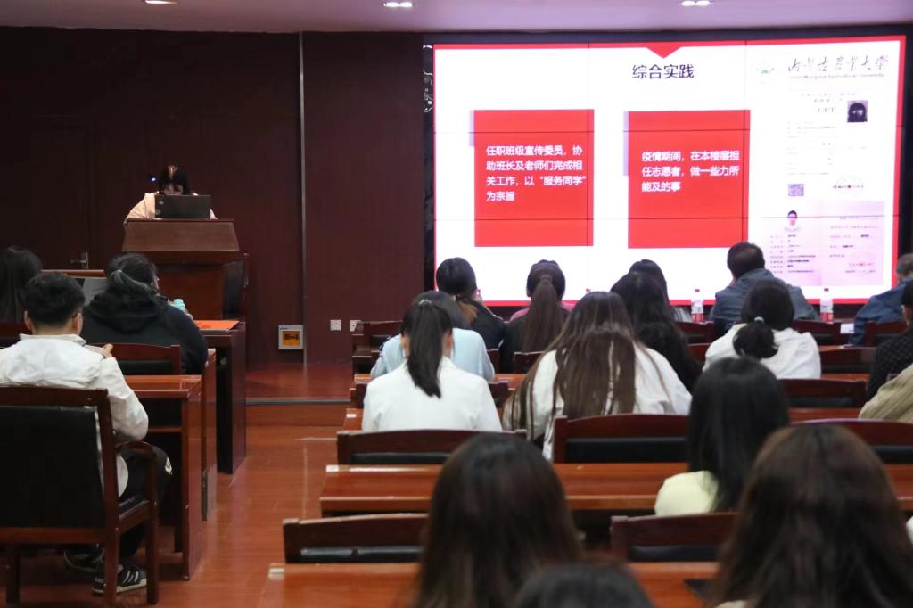 参加本次国家奖学金和自治区奖学金答辩的38名同学以现场抽签的方式决定发言顺序,其中包含本科生16人,研究生22人。各位参加答辩的员工精心准备了PPT和演讲稿,每个人分别从思想政治、学习经历、专业成绩、志愿活动、社会实践、科创活动、获奖情况等方面进行了展示,并讲述自己对未来的展望和努力的方向。