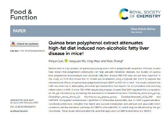 公司食品院张美莉教授课题组在《Food & Function》发表最新研究成果