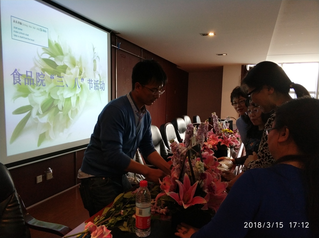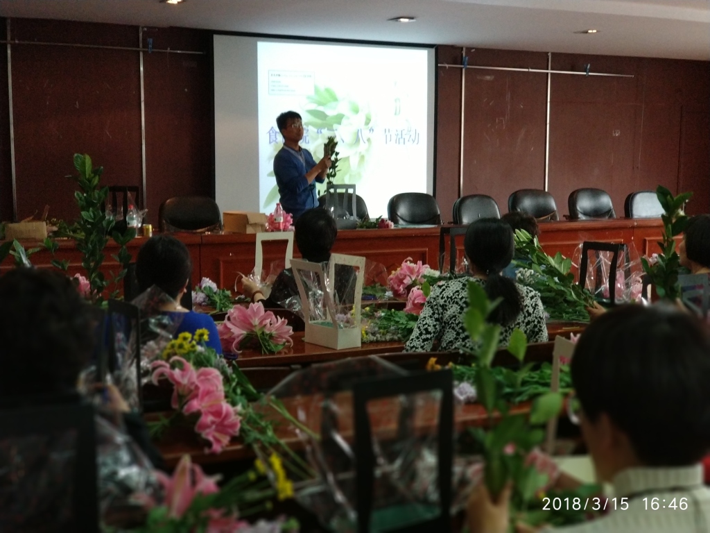为庆祝“三·八”国际劳动妇女节,提高女教工的生活质量,不断满足女教工对美好生活的需要,3月15日下午4:00,食品公司在乳品楼二楼会议室举行艺术插花花艺培训讲座,公司广大女教工参加了活动。