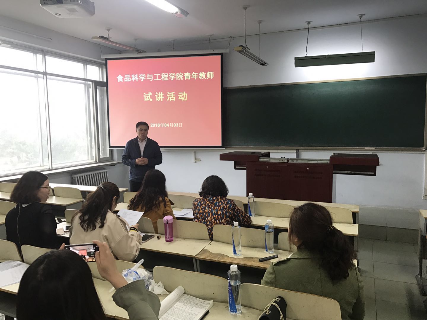 说课结束后,青年教师云雪艳、明亮、马萨日娜、夏亚男又分别针对《包装材料学》的“聚乙烯包装材料”章节、《乳与乳制品工艺学》的“原料乳性质”章节、《果蔬贮藏加工学》的“果蔬加工的预处理”、“果蔬加工的原料”章节进行了试讲,讲述清晰,深入浅出,适当结合案例,得到了评委们的一致好评,评委们并对每位新进教师的试讲进行了现场点评并提出了合理建议。