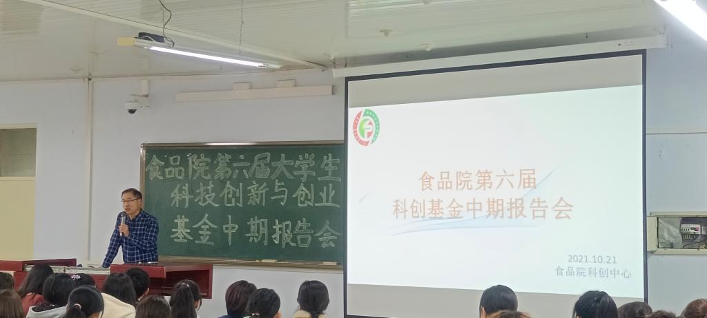 公司于10月21日19:00在博学楼309室召开食品院第六届老员工科技创新与创业基金项目中期报告会。公司分管教学副经理王俊国教授、食品科学与工程教研室主任杨杨老师、乳品工程教研室主任陈霞老师、食品质量与安全教研室主任杨飞芸老师、包装工程教研室副主任张鹏老师、学办王微老师担任本次会议评委。参加本次会议的还有各项目小组成员、科创中心成员及对科技创新项目感兴趣的同学。