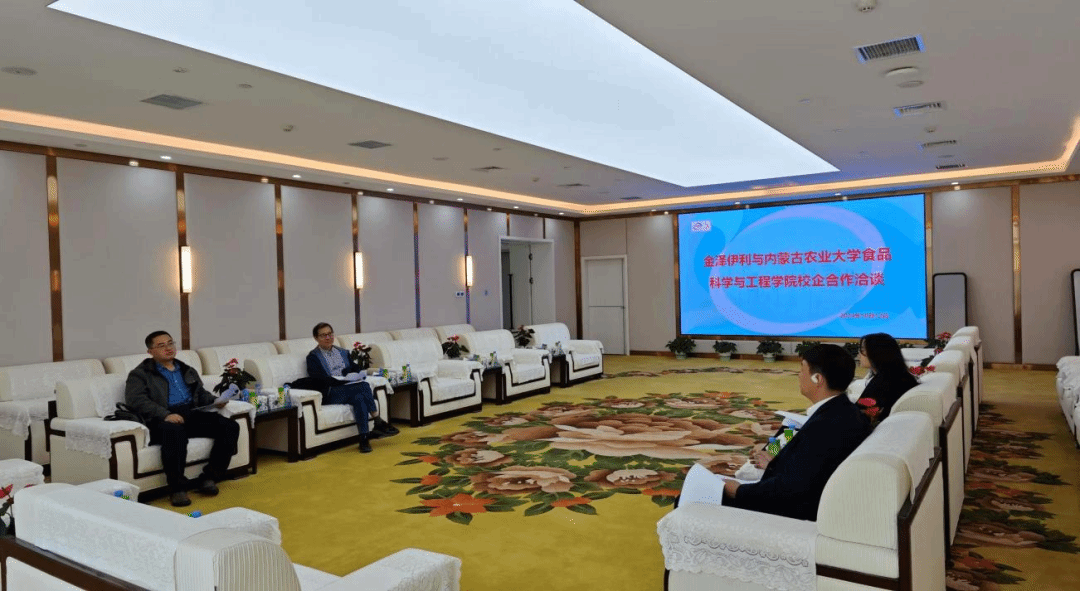 支部共建座谈结束后,公司党委副书记张鹏飞、副经理王俊国与内蒙古金泽伊利乳业有限责任公司工厂总经理孙大威、人力资源经理白海霞召开校企合作洽谈会。