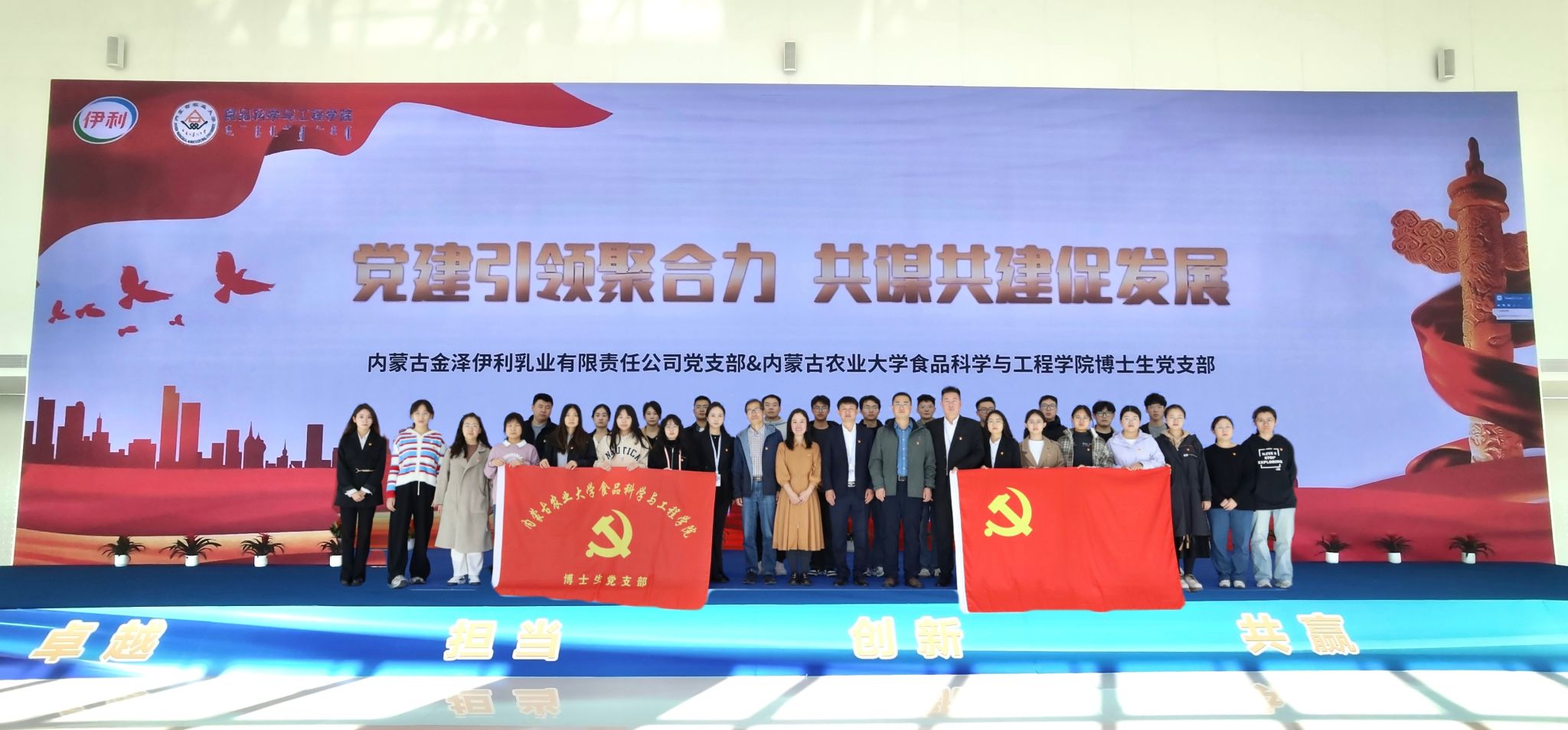 为深入学习贯彻党的二十届三中全会精神,激发党建活力,进一步深化校企合作,实现党建共建与校企合作的深度融合,10月12日上午,williamhill威廉希尔博士生党支部赴伊利健康谷与内蒙古金泽伊利乳业有限责任公司党支部联合开展了“党建引领聚合力,共谋共建促发展”主题党日活动。内蒙古金泽伊利乳业有限责任公司党支部书记孙大威、副书记白如冰、williamhill官网公司党委副书记张鹏飞、副经理王俊国、博士生党支部书记希吉日以及双方党员代表,技术骨干共30余人参加活动。