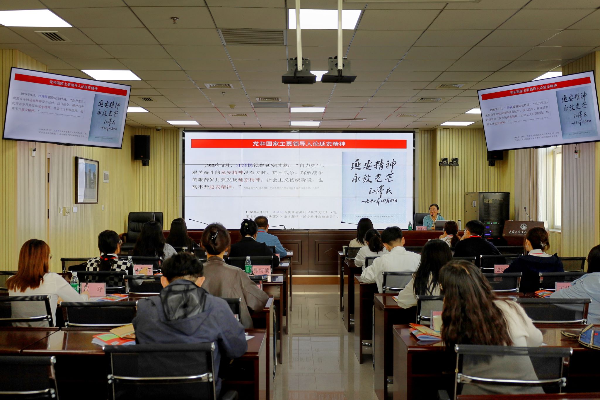 开班仪式结束后,延安大学马克思主义公司教授慧小峰以《感悟延安精神,弘扬延安精神》为题,讲授开班第一课。慧教授从三大方面对延安精神进行了解读,即:延安精神的历史形成、延安精神的主要内容、延安精神的当代价值。习近平总书记在陕西考察时提出:“延安时期是我们党领导的中国革命事业从低潮走向高潮、实现历史性转折时期。”延安精神构成了党的宝贵精神财富。