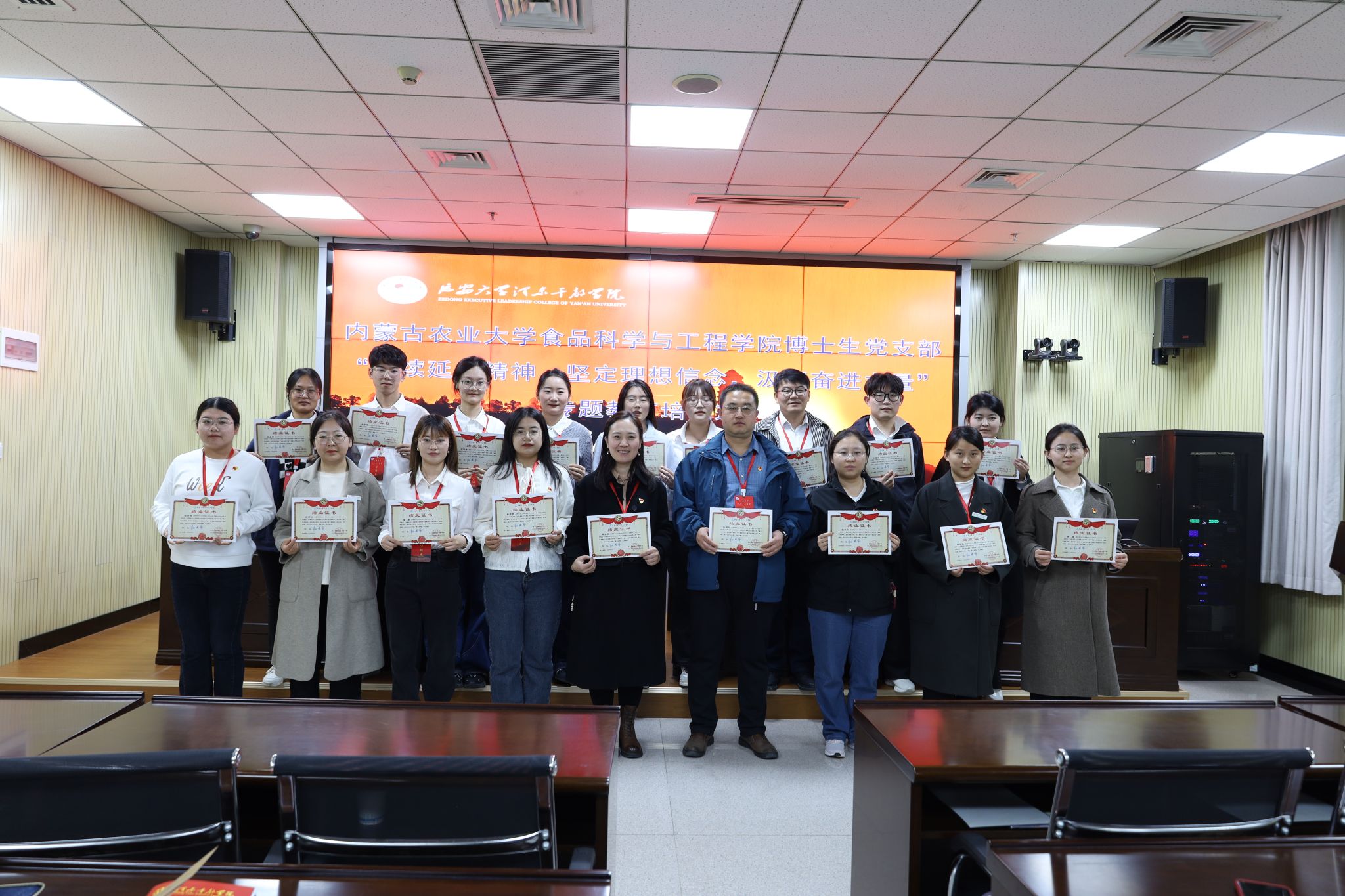 27日下午,结业仪式在延安大学泽东干部公司举行。仪式上,博士生党支部党员代表彭清婷上台发言,代表全体党员表达了学思践悟、以学促干的心声。公司党委副书记张鹏飞同志作总结致辞,对大家培训期间的学习态度与良好风貌给予了高度评价,对泽东干部公司的支持表示了感谢,并勉励大家将所学化为所用,积极投身于各自的专业领域,为推动学科发展和科技创新贡献智慧与力量。